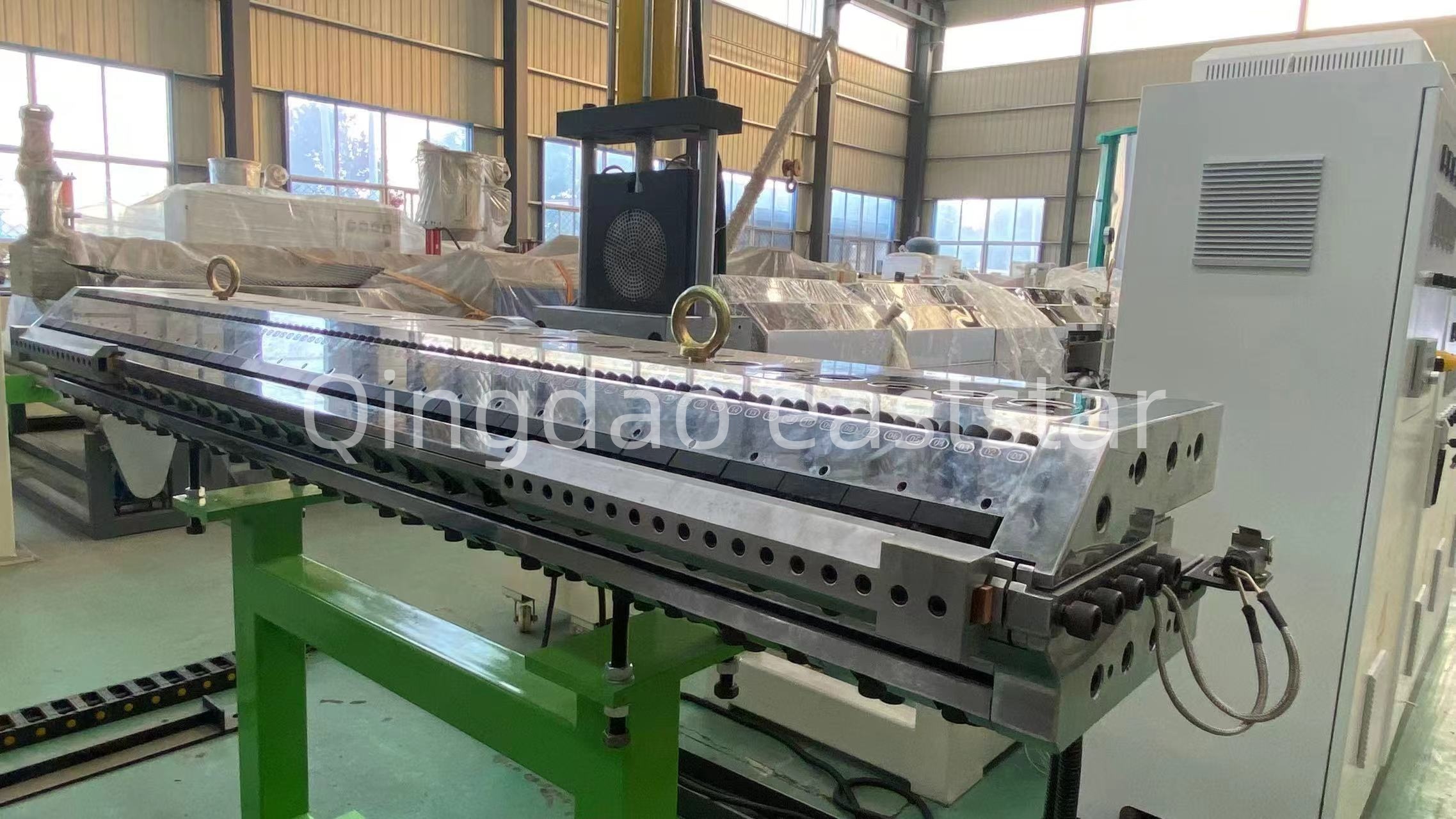 На градежната индустрија и обезбедуваме стручни лицаПроизводствена линија за одводнување на ЈПрешение. Оваа опрема е специјално дизајнирана за производство на полиетиленски одводни плочи со ширина од 1500 mm. НаОпрема за одводна плоча од ЈПкористи екструдер со еден шраф 105/33 како јадро, опремен со матрица за закачалката од 1650 mm и уред за формирање со две ролни, постигнувајќи стабилна моќност од 250-280 kg/h. Оваа производна линија за одводна плоча, долго време докажана на пазарот, продолжува да обезбедува сигурна опрема за производство на дренажни материјали за одводното поле на зградите.