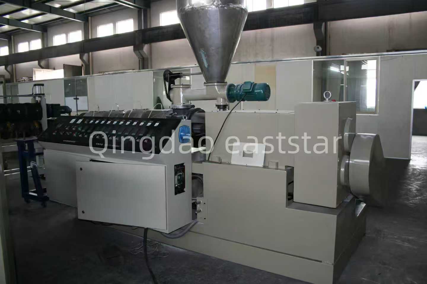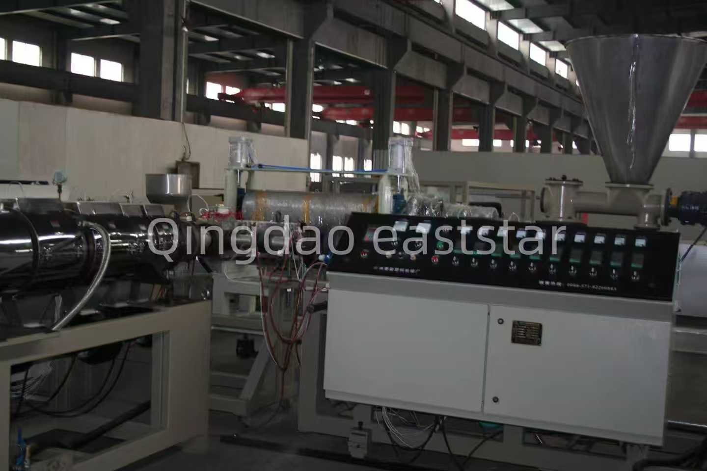 Основната опрема наЛинија за производство на брановидни плочи со ко-екструзија PC+ASAвклучува два екструдери со една завртка, SJ-120 и SJ-40, кои се користат за екструдирање на слојот PC и ASA слојот, соодветно.