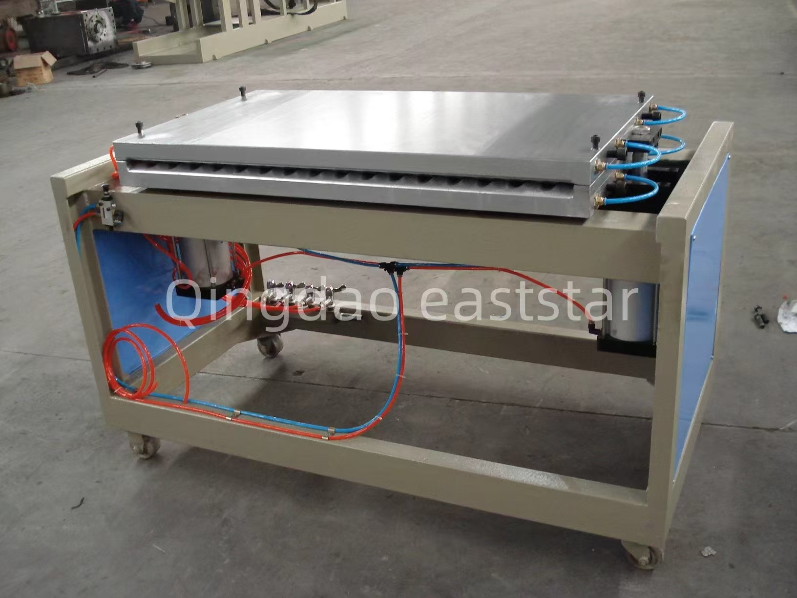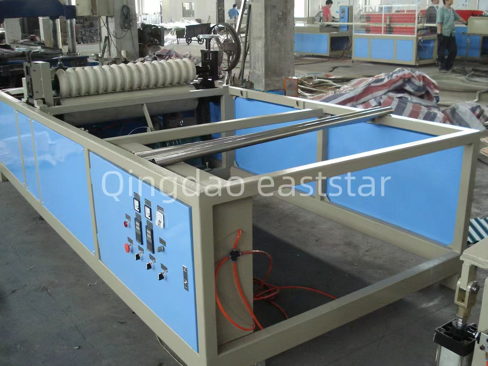 Помошниот систем наЛинија за производство на брановидни плочи со ко-екструзија PC+ASAвклучува матрица за обликување, влечна машина и единица за сечење.