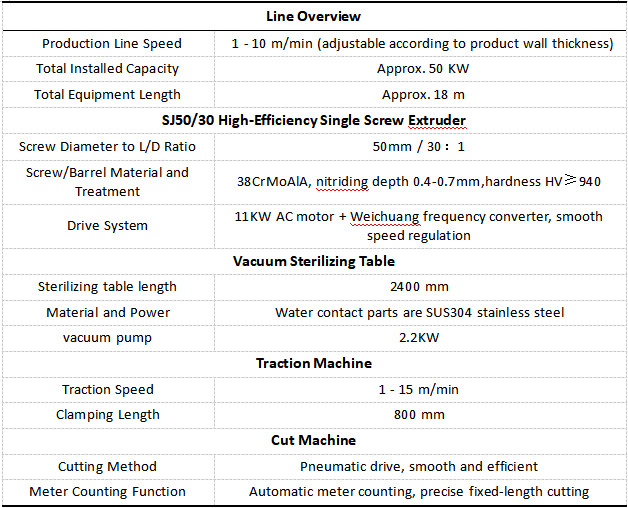 Поставувањето за овалинија за производство на капакот на цевката за светилкасе фокусира околу некои клучни детали за опремата. Во срцето се наоѓа екструдерот со една завртка SJ50/30. Се одликува со завртка од 50 мм со сооднос должина и дијаметар од 30 до 1. И завртката и бурето доаѓаат од нитридиран челик 38CrMoAlA, кој помага во целосно топење на материјалите, ги одржува работите рамномерни и обезбедува стабилен излез дури и за тешки работи како компјутер, PS и ABS.Линија за производство на капак на цевката за светилкаспарува 11 kW AC мотор со конвертор на фреквенција Weichuang, така што брзината останува под прецизна контрола. Плус, автоматскиот вакуумски доводник и фен за одвлажнување се грижи за влагата во суровините како компјутер и ABS, осигурувајќи се дека топењето останува висококвалитетно за процесот на истиснување. Целата линија добива централна контрола преку нисконапонските делови на Siemens и контролорите за температура Omron, што овозможува сè да работи сигурно.