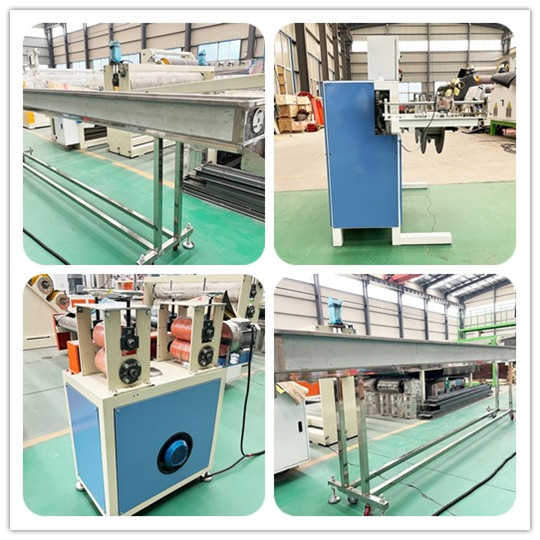 Машината за истиснување на лентата со раб на PE Bag Bag вклучува компресор со еден шраф - калап за глава на машината - складиште за обликување вакуум - трактор за влечење - машина за намотување или машина за сечење 1. Главната машина го усвојува преносот на машината за стопирање на тврда површина на забот, цевката за завртки е направена од легиран челик со висока јачина (38CrMoALA) или легиран челик со висока цврстина (9Cr18MoV), а главниот погон на машината усвојува контролер со променлива фреквенција наизменична струја, без дамки од масло, низок шум; контрола на температурата Уредот прифаќа интелигентен мерач за контрола на температурата, а точноста на контролата на температурата достигнува ±1℃; 2. Главното тело на базенот за ладење од нерѓосувачки челик е направено од увезен материјал SUS304; рамката на резервоарот за вода усвојува уред за подигнување со навој, кој може да се прилагоди во три димензии нагоре, надолу, лево и десно, што ја прави операцијата многу погодна; исто така е опремен со резервоар за складирање вода од не'рѓосувачки челик, така што водата за ладење може да се рециклира без прскање на земја; 3. Машината за влечење има контролер со променлива фреквенција и брзината на влечење е беспрекорно прилагодлива. 4. Машината за ликвидација прифаќа фреквентен конвертор за да ја прилагоди брзината за да постигне идеална брзина на производство.