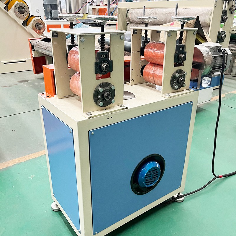 Машината за истиснување на лентата за раб на PE Bag Bag вклучува компресор со еден шраф - калап за глава на машината - складиште за обликување вакуум - трактор за влечење - намотување
