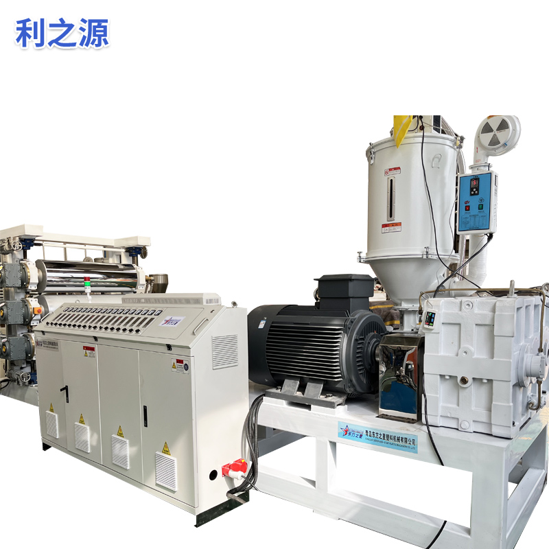 Опрема за екструдер со мека ПВЦ анти-лизгачка плоча: Опремата главно се состои од екструдер со една завртка, калндер со три валјаци, ладење од 6 метри држач, машина за влечење со гумени ролери, машина за стрижење и уред за подвижна лента.