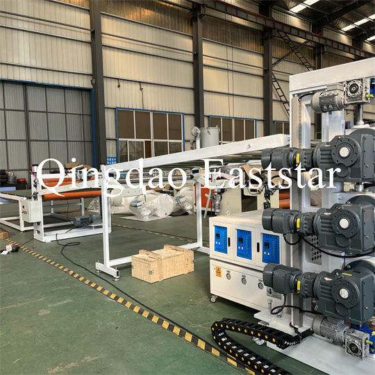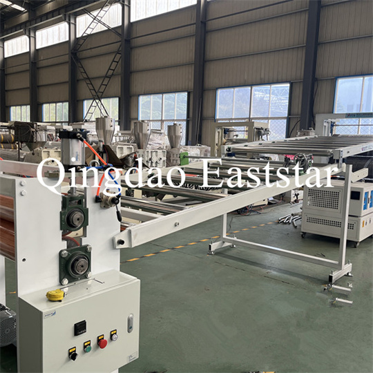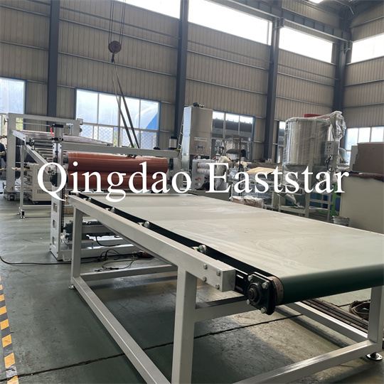 држач, машина за влечење со гумени ролери, машина за стрижење и уред за подвижна лента. ПВЦ екструдер против лизгање на плочи Опрема, ширина на производот