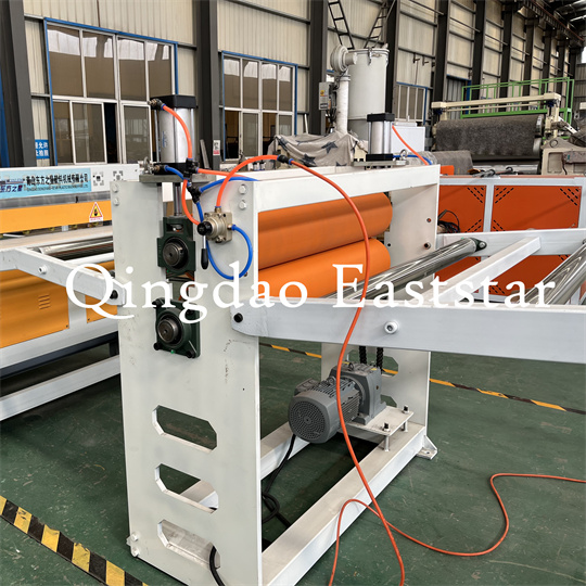 држач, машина за влечење со гумени ролери, машина за стрижење и уред за подвижна лента. ПВЦ екструдер против лизгање на плочи Опрема, ширина на производот и