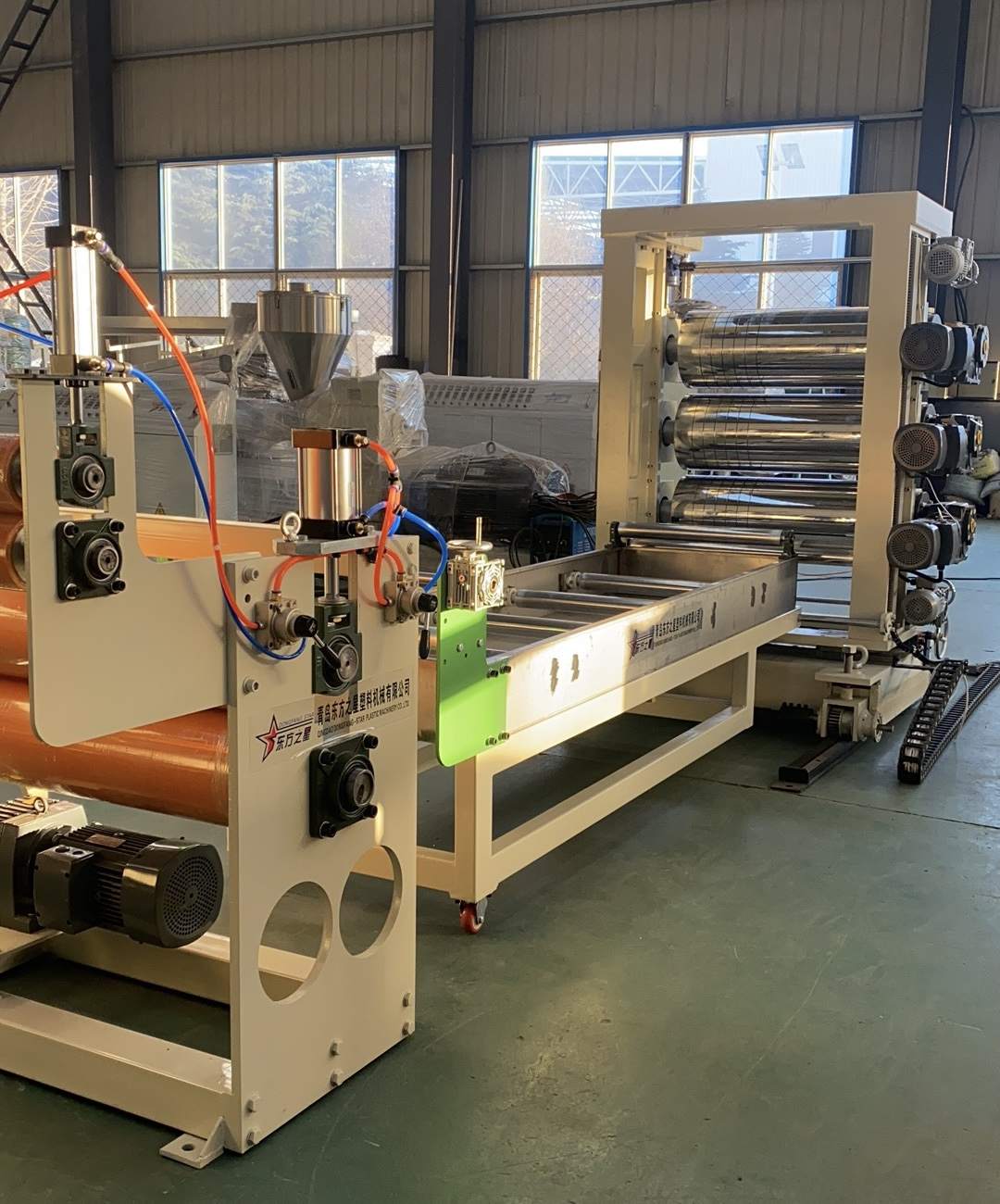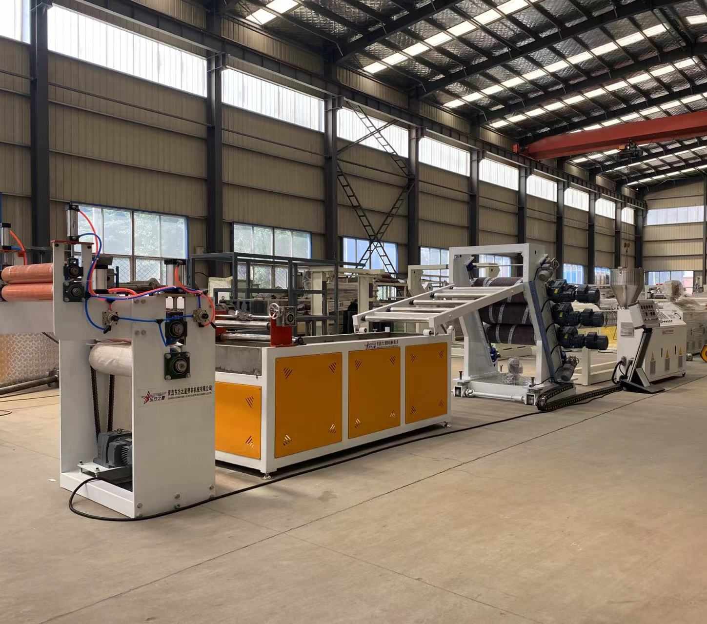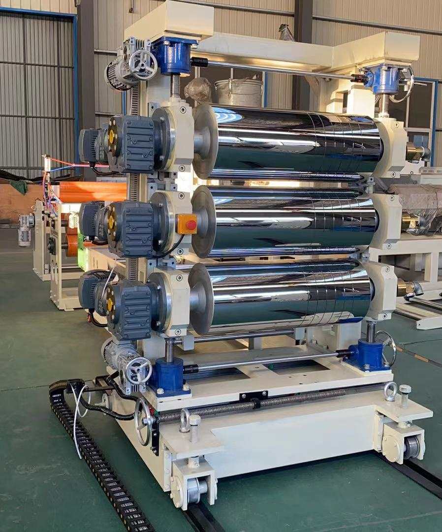 Производна линија за ПВЦ проѕирни меки завеси за врати: Способни за производство на ПВЦ проѕирни пластични листови со ширина од 200 до 600 милиметри и дебелина од 0,8 до 3 милиметри. Опремата вклучува екструдер со едно завртување SJ90 или SJ-120, прилагодлива флексибилна матрица во форма на буквата Т, вертикален или наклонет 45 степени календар со три ролери, контролер на температурата на водата три-во-едно, носач за ладење од не'рѓосувачки челик опремен со широка широчина, прилагодлива машина за кроење и кројка со ролни. намотувач на вратило што го проширува воздухот. Произведените листови имаат сјајна површина, висока транспарентност, мекост, без пукнатини, без мирис, без меурчиња и се флексибилни, отпорни на ладно, отпорни на абење, отпорни на киселини и алкали и отпорни на корозија.