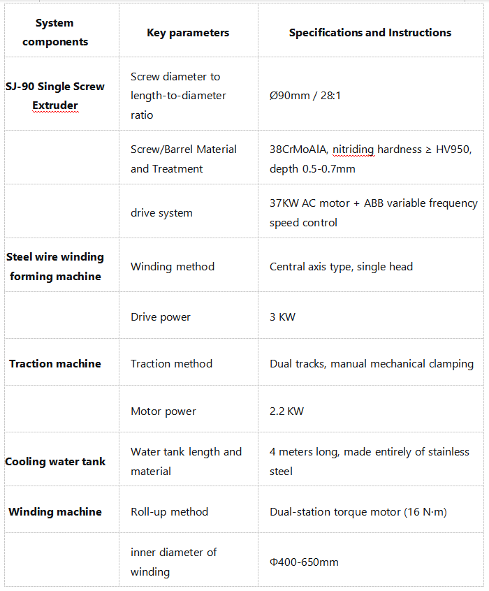 Оваа производна линија за истиснување црева засилена со ПВЦ челична жица е идеален избор за производство на црева засилени со челична жица со високи перформанси: