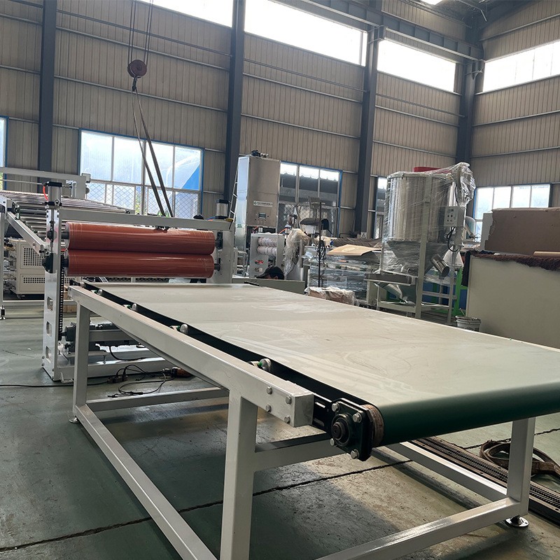 Линија за производство на ПВЦ проѕирен екструдер: опремата главно се состои од екструдер со два завртки, калап за плочи, калндер со три валјаци, држач за ладење, машина за влечење со гумени ролери, машина за сечење