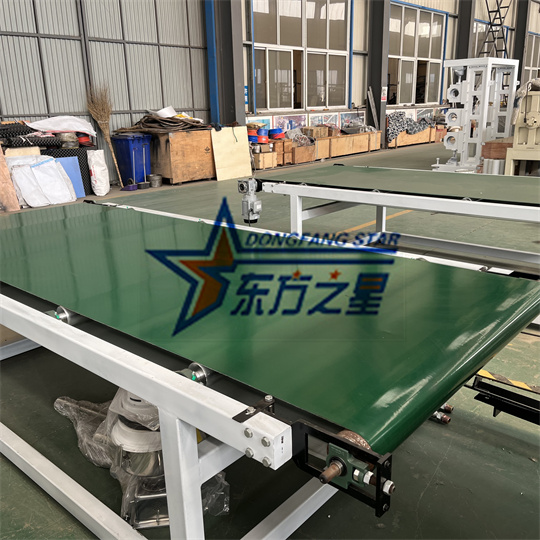 Машина за екструдер со меки ПВЦ листови Машина за шаблони за желка се нарекува и опрема за сточна табла ПВЦ. Главно се користи за положување земја на шупи за свињи, говеда и овци. Тој игра улога на зачувување на топлината и е корисен за животинското производство. Опремата за ПВЦ желка се состои од: екструдер, калап за плочи, калндер со три ролни, држач за ладење, влечна машина, машина за сечење, држач за пренос, часовна моќност 350-400 кг/ч, спецификации за ПВЦ табла желка: ширина 1000 мм, дебелина 6 мм. Ширината и дебелината на производот се прилагодливи, а опремата може да се нарача според барањата на клиентите. Опремата за ПВЦ желка, исто така, може да произведе производи од кора од портокал и дијамантски модел со замена на средниот валјак.