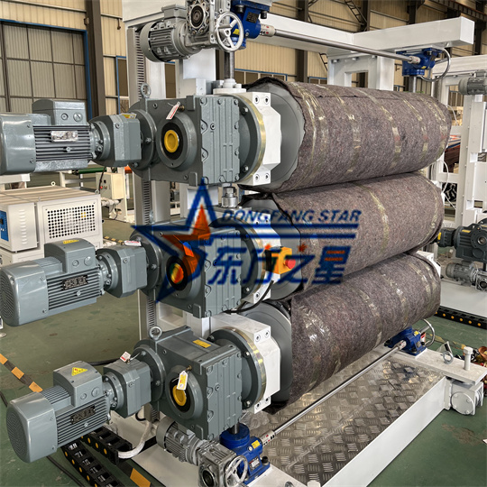 Најважниот дел од машината за екструдер со меки ПВЦ листови Машина за желка е машината за формирање со три валјаци, која има два мазни валјаци и валјак од школка од желка во средината. Времето за гравирање на ролерот е релативно долго, така што циклусот на испорака на целата опрема е релативно долг. Производителите кои треба да ја обработат и приспособат опремата за лушпи од желка мора однапред да нарачаат.
